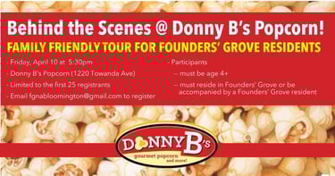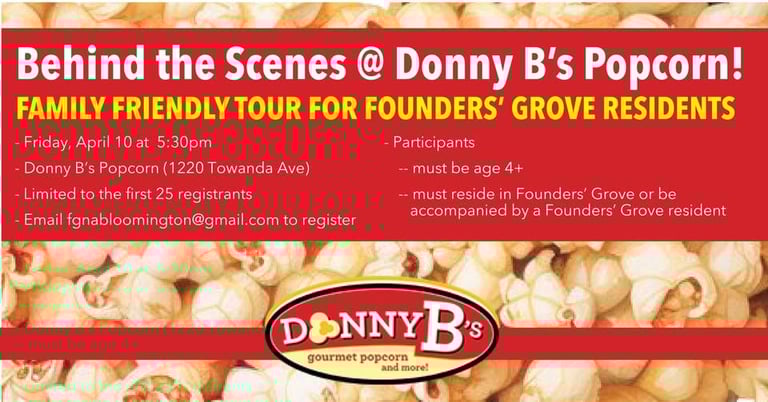 This behind-the-scenes tour is for Founders Grove Neighborhood residents. It is limited to the first 25 FGNA residents to sign up at fgnabloomington@gmail.com. (Participants must be age 4+ years.)
